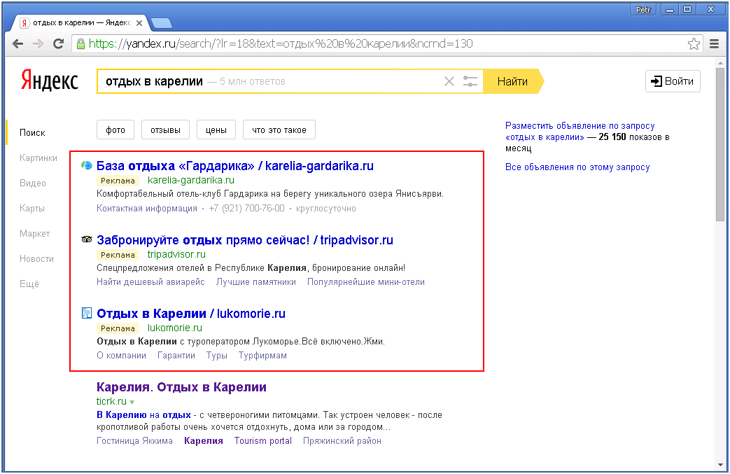 Это короткие текстовые объявления, которые отображаются в начале результатов поиска Яндекс и Google.